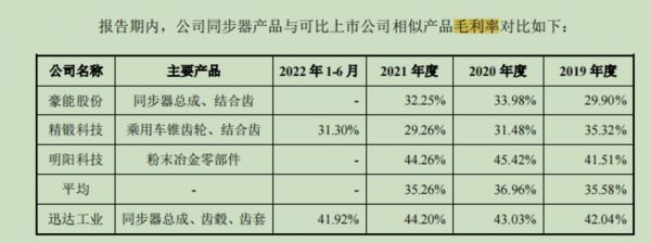 公开资料显示,迅达工业主要从事汽车传动系统零部件产品的研发、生产和销售,目前产品包括汽车变速器用同步器总成、齿毂、齿套及紧固件、其他粉末冶金件等相关产品。