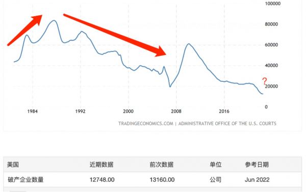 其原因主要原因在长期的低息以及财政政策使经济体充斥着大量的“僵尸企业,我们知道,2020年疫情之后美国政府采取了积极的救市措施:联邦基准利率和准备金降为0,无限QE,且对企业和居民给予现金补贴(美联储购买财政部债券,再充实个人和企业资产负债表)等等。