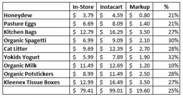 在Instacart购物要平均多支付25%