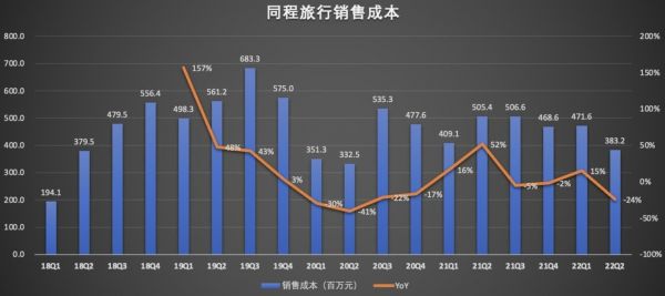 同程旅行二季度的销售成本为3.83亿元,同比减少24%。