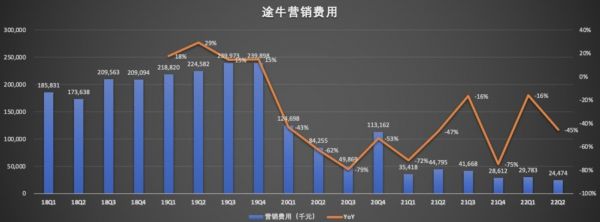 途牛二季度销售和营销费用为2450万元,同比下降45.4%。期内非公认会计准则销售和营销费用(不包括股权激励费用和收购的无形资产摊销费用120万元)为2330万元,同比下降46.7%,主要是由于促销费用和营销人员相关费用减少所致。
