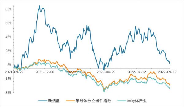 事实上,A股半导体板块从8月上旬开始出现回调,半导体产业指数从8月上旬至今累计跌幅17%,其中细分板块分立器件板块指数从8月上旬至今累计跌幅接近23%,而新洁能股价跌幅度较板块跌幅度更大,累计跌幅已超过30%。