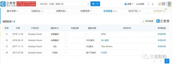 据统计,从成立截止到2021年8月份,FF共有14次融资记录,总融资金额已超50亿美元。