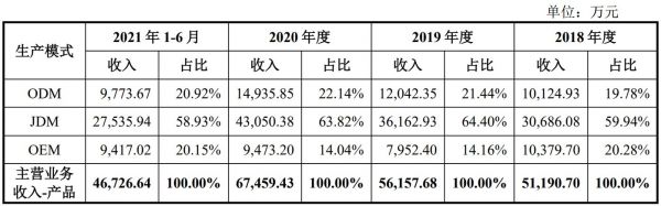以上三中模式均为代工生产。对于同一系列产品而言,ODM模式下毛利率最高、JDM毛利率次之、OEM毛利率最低。通达创智在招股书中提到,与客户的合作模式将逐步向JDM和ODM模式升级。