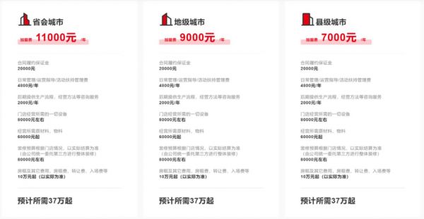 那如果我是加盟商,我开一家店需要花多少钱呢?雪王官网的答案是37万。其中变动费用聚焦在房租费用上,目前三线城市的临街商铺租赁费用远不止10万元,按照蜜雪冰城专家电话会议的说法,目前开一家店的成本在40-60万之间。