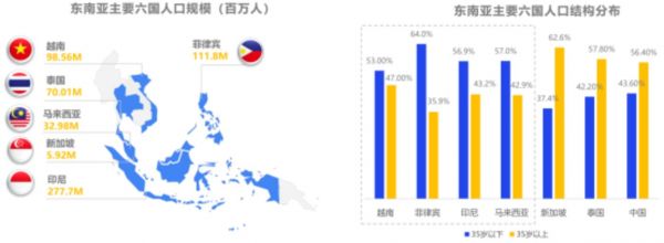 以人口为例,据Worldometers数据显示,截至2021年8月,东南亚人口平均年龄不到29岁,60%以上在35岁以下。庞大的年轻用户是东南亚的最大吸引力。