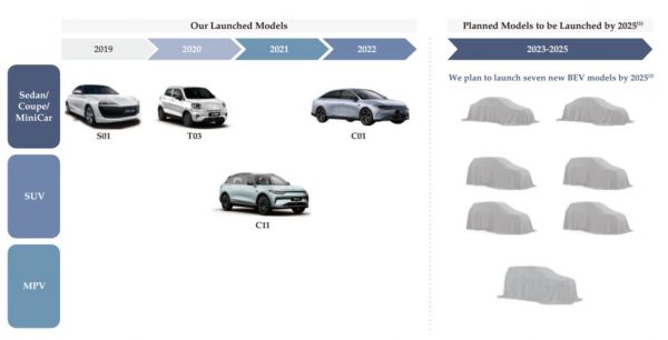 除了已经交付的两款中端车型外,零跑还 在招股书中披露,未来将以每年1~3款车型的速度,到2025年年底前推出8款车型,涵盖各种尺寸的轿车、SUV及MPV。
