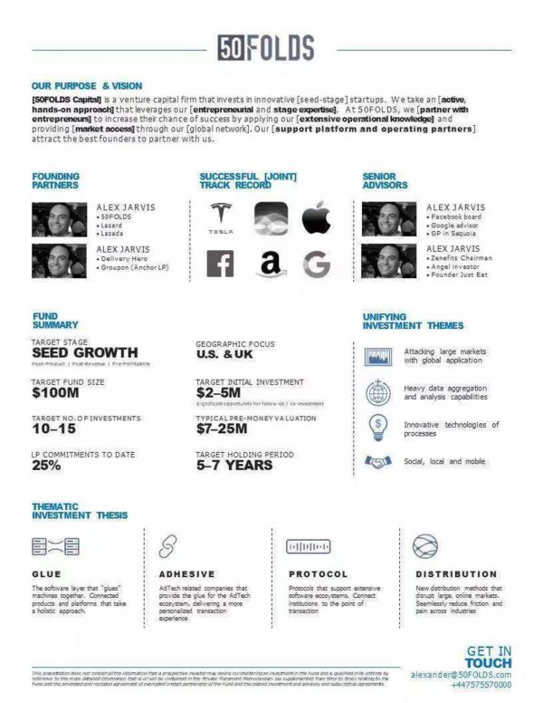 在今天如果一个基金管理人(GP)无法用一页纸让基金的投资人(LP)找到你的亮点,那么LP大抵也不会有兴趣读完你募资计划书的剩余部分。