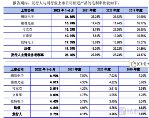 除此之外,美信科技在“低”研发投入的情况下,却拥有着超过同行业高得多的毛利率。报告期内,美信科技的毛利率分别为23.17%、27.23%、27.99%、25.38%,同行业可比公司平均值分别为21.89%、20.32%、19.2%、19.97%;研发费用率分别为3.03%、3.26%、4.11%、3.75%,同行业可比公司平均值分别为4.82%、4.76%、4.91%、4.64%。
