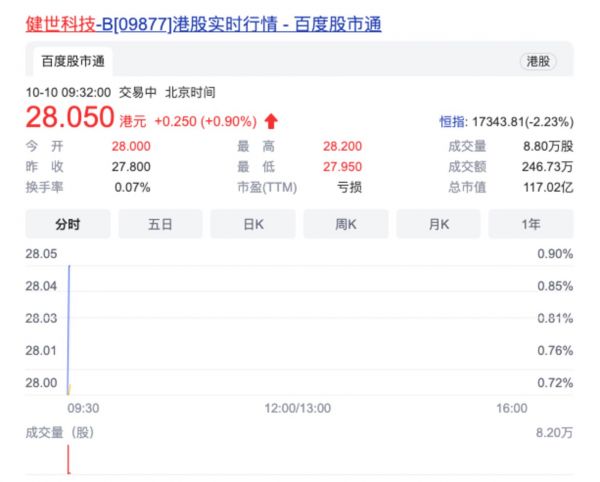 10月10日,宁波健世科技股份有限公司(以下简称“健世科技”)登陆港交所,发行价27.8港元/股,开盘28港元/股,涨幅达0.72%。截至发稿前,健世科技每股涨0.9%至28.05港元,总市值来到117.02亿。