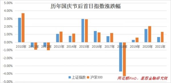 在此背景下,考虑到国庆节期间国内并无其他重大事件扰动,叠加历史上的日历效应(受节前避险资金回流影响,节后第一日指数大多以上涨收盘),节后第一天,A股大概率会走出跟随式行情,以上涨开盘。