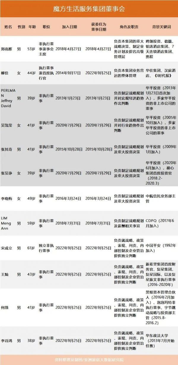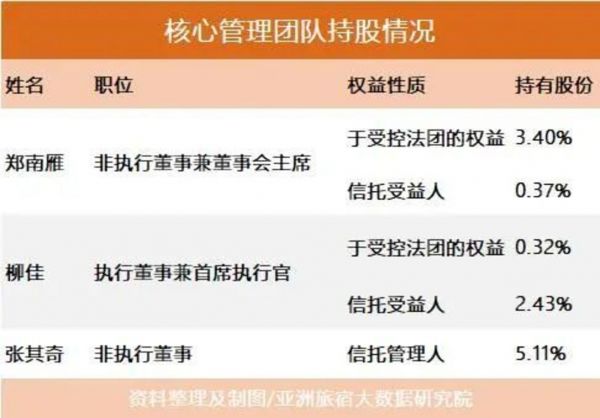 这些董事与高管背景各不相同。其中担任非执行董事兼董事会主席的郑南雁与担任执行董事兼首席执行官的柳佳以及两位副总裁李亮与钱智康均有酒店行业从事经验,非执行董事李晓梅与LIM Meng Ann则分别来自两家不同的资方,首席财务官宋铮曾在阿里巴巴、宜家、普华永道等大型集团中从事投资管理工作。