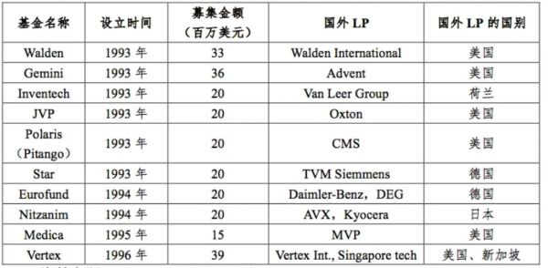 自1993年Yozma I建立之后,三年内,Yozma I先后参股10家市场化创业投资基金。其中,有6家设立于1993年(Gemini、Star、Pitango、Walden、Inventech、JVP),有两家设立于1994年(Nitzanim、Eurofund),剩余两家则分别设立于1995年(Medica)和1996年(Vertex)。主要LP来自美国,荷兰、德国、日本LP也参与其中。