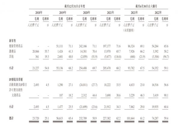 根据招股书显示,巨星传奇的业务营运主要包括两大板块:板块一为新零售业务,主要开发及销售健康管理产品及护肤品;板块二为IP创造及营运分部,即通过为媒体内容提供策划及其他项目管理服务、担任大型明星演唱会及其他活动的策划服务供货商或投资方以及设计、授权专有明星IP等。