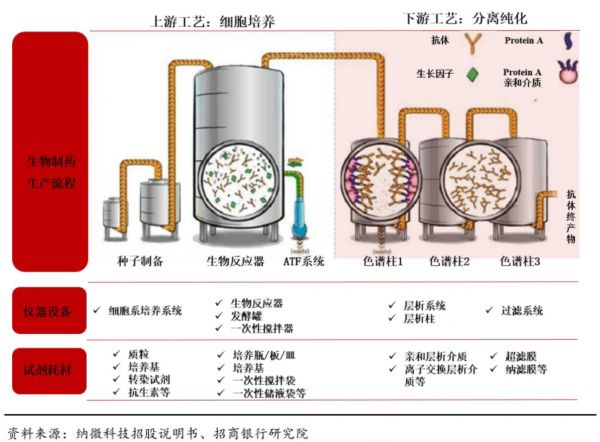其中,又以试剂、耗材挑大梁,贡献了过半的收入。试剂及耗材主要包括细胞培养基、一次性产品、过滤器及层析填料。