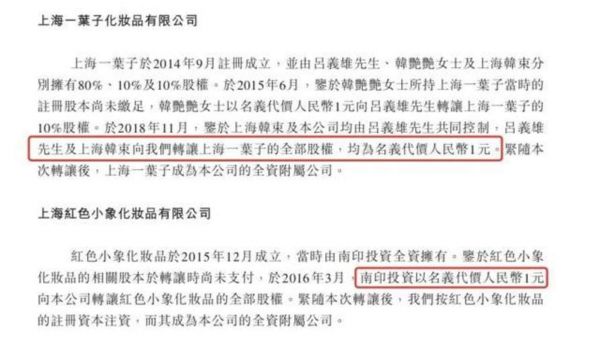吕义雄自2004年开始担任公司CEO,此后一直较为沉寂,但在2014年-2015年,以及2020年这两个阶段,通过多次的收购、新增注册资本以及引入外部投资者等一系列操作,吕义雄逐渐成为上美集团的控股股东。在此期间,上美集团也以现金收购股权的形式,将此前由吕义雄全资或控股的上海束美、上海中翊、上海潮尚、上海一叶子这四家公司,并入上美集团并成为其一级全资子公司。其中2016年3月、2018年11月,上海一叶子、红色小象化妆品这两家公司,也分别被吕义雄、南印投资以1元代价将股权全部转让给上美集团。