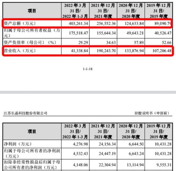 长晶科技资产规模及营收情况,截图自招股书