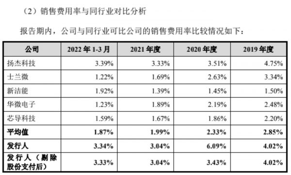 长晶科技销售费用率与行业对比,截图自招股书