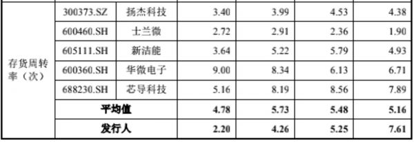 长晶科技存货周转率与行业对比情况,截图自招股书