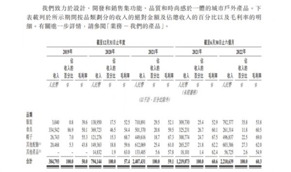 虽然热衷于户外运动的很多男性用户压根没有听说过这个品牌,但并不妨碍都市爱美女性在各大直播间对蕉下的购买热情。来自招股书的数据显示,从2019-2021年,公司分别实现营收3.85亿元、7.94亿元、24.07亿元,截至今年上半年,蕉下总营收22.1亿元,同比增长81.3%,净利润4.9亿元,业绩实现爆发式增长。