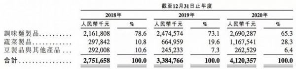 另外两大板块分别是蔬菜制品和豆制品及其他产品,蔬菜制品产品分别收入6.65亿元、11.68亿元和16.64亿元,分别占总营收的19.6%、28.3%和34.7%;豆制品及其他产品分别收入2.45亿元、2.63亿元和2.18亿元。