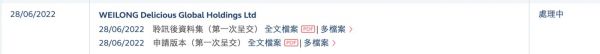 经派财经翻看香港交易所官网公告,2022年6月28日递交的卫龙控股申请书及聆讯后资料已经通过,显示正在处理中。