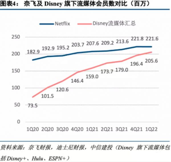 图/奈飞与迪士尼流媒体付费订户数量对比 来源/中信建投 燃次元截图