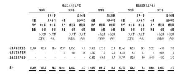 值得注意的是,招股书显示,截至2021年末,九方财富的付费用户为11.05万名。然而截至2022年6月30日,该数字仅为3.81万名。