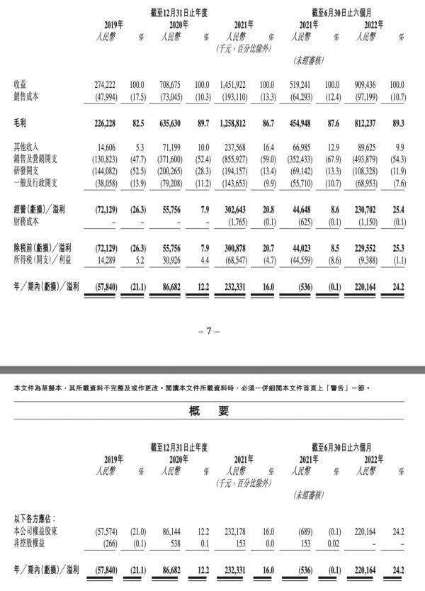 2018-2021年及2022年上半年,九方财富的收入约为970.1万、2.74亿、7.09亿、14.52亿、9.09亿元;净利润分别为-1054.1万、-5784.0万,8668.2万、2.32亿、2.20亿元。