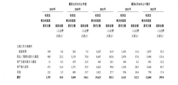 招股书显示,2019-2021年及2022年上半年,用户要求九方财富退费的次数分别为1707次、5849次、19623次、12060次;对应的退款金额分别为4500万、1.46亿、3.83亿、2.99亿元。