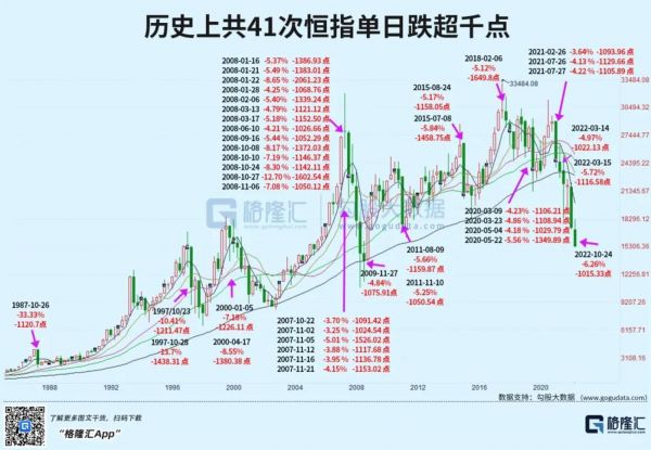 历史上看,港股有史以来,恒指单日跌超千点的情况一共出现过41次(加上本次),基本每次都是伴随着非常重大的背景原因。
