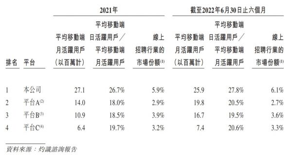 根据灼识咨询的数据,2021年和2022年上半年,Boss直聘在国内线上招聘行业的市占率分别达到5.9%和6.1%,呈持续增长态势。