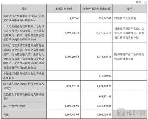 公开资料显示,2022年1-9月,金溢科技的非经常性损益为1956.21万元,因此其扣非后归母净利润为-605.24万元,而在金溢科技的非经常性损益中,其主要拥有1527.52万元的政府补助和541.34万元购买理财产品产生的投资收益。可见,金溢科技是依靠非经常性损益才实现了扭亏为盈。