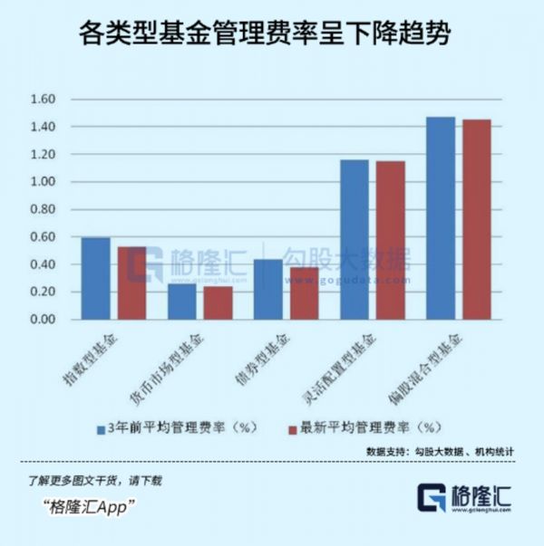 据券商中国,目前普通股票型基金最低管理费率已经低至0.8%;指数型基金平均管理费率低至0.53%,最低费率为0.15%;债券型基金的平均管理费率降至0.38%,货币型基金的平均管理费率降至0.24%。
