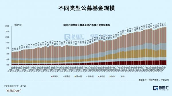 第一,公募基金规模扩容增速将会趋缓。最近几年,公募基金迎来了实实在在的大爆发,总规模从2017年初的9万亿元左右飙升至现在的27.3万亿。不足6年时间,扩容3倍,年复合增速高达20%以上。但在如此之高的基数上,未来增速大幅放缓将会是必然。