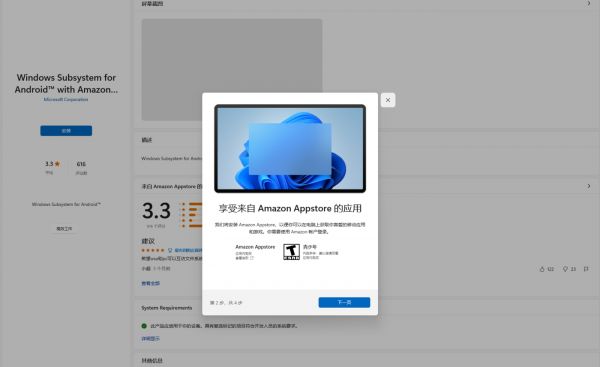 在应用正式上架后,用户不必再自己进行虚拟化配置。只要下载安装WSA,系统就会提示你一次性安装一些虚拟化软件,基本上是将一些Android基础注入到Windows 11系统中,以便它可以合理地运行Android应用程序。