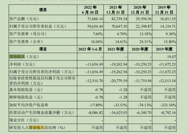 也就是说,此次闯关科创板的恒润达生,尚无产品上市销售,因此2020年、2021年以及2022年1-6月无收入。而2019年其他收入为19.47万元,来自于公司向苏州克睿基因生物科技有限公司提供了一批次实验用逆转录病毒收入。