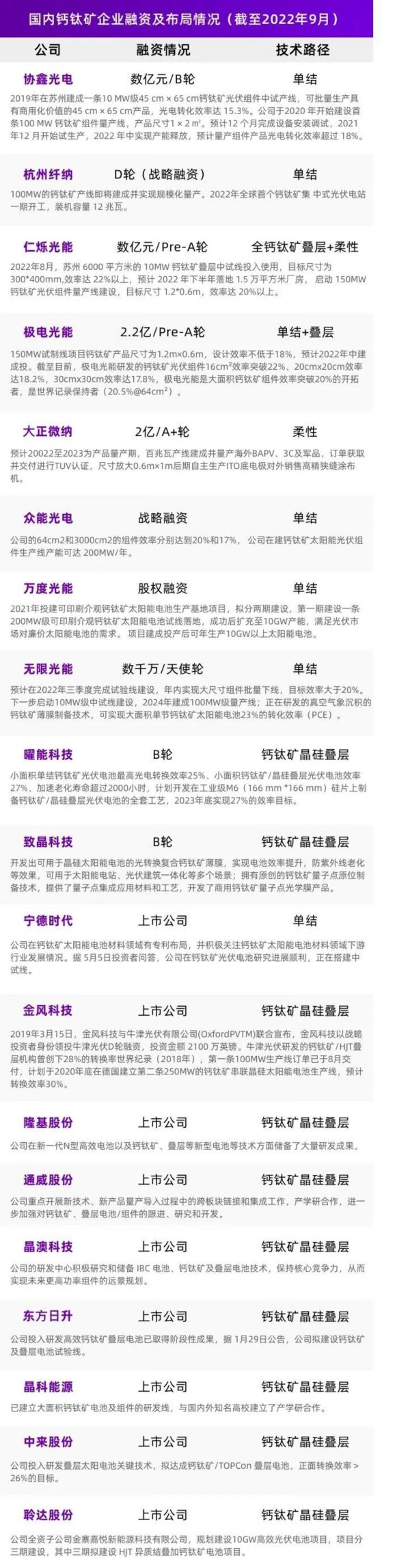 钛媒体APP了解到,如今钙钛矿相关上市公司已经拓展至10余家,另外还包括一些处于融资阶段的公司。目前进展较快的诸如协鑫光电、杭州纤纳、任烁光能等,都于今年开始实现钙钛矿组件的大规模生产。