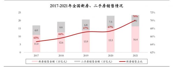 2017年-2021年全国新房、二手房销售情况 数据来源:国家统计局、贝壳研究员