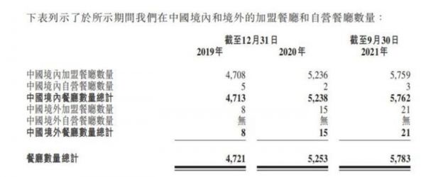 根据招股书,截至2021年第三季度末,杨国福旗下共有5783家餐厅,其中仅有3家直营餐厅,其余都为加盟店。
