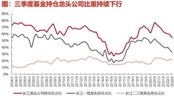 与此同时,长江证券研究所最新的一份研报显示,三季度公募基金持有龙头公司的比重持续下行,主流龙头公司的抱团程度在21年一季度达到历史高位后,整体持仓集中度已持续下行了一年多。