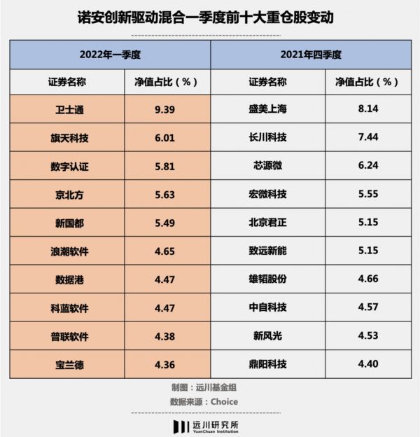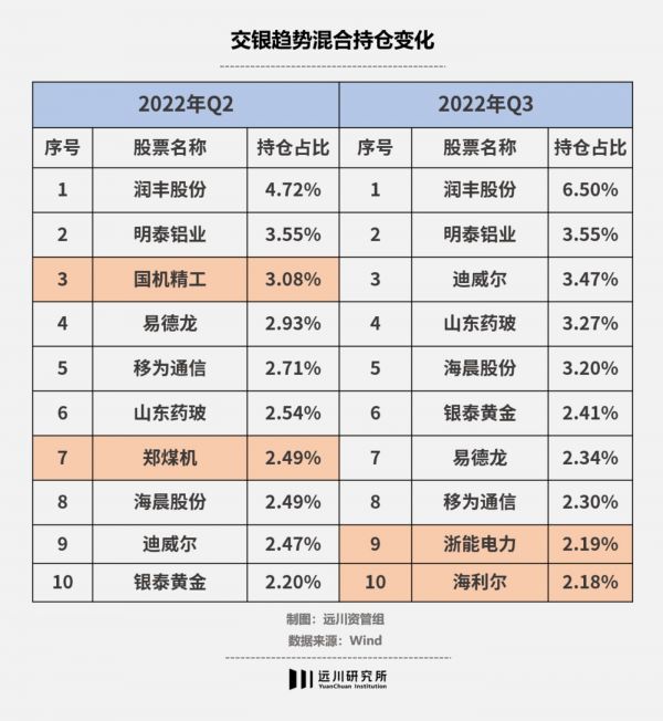 注:橙色底纹为十大持仓中两季度不同个股