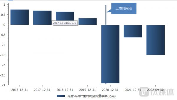 钛媒体APP还注意到,南新制药在上市后就没有在经营上赚到过现金。公开资料显示,2016年-2021年和2022年1-9月,南新制药经营活动产生的现金流量净额分别为0.75亿元、0.71亿元、0.64亿元、0.33亿元、-2.91亿元、-0.63亿元,-1.5亿元。可见,南新制药在上市之前还能在经营上赚到现金,而上市之后却从却在经营上赚到现金,且合计净流出5.04亿元经营现金。