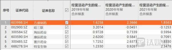 也就是说,除了哈三联2020年至2021年未在经营上净流入现金之外,其余时间段内,南新制药的同行业可比公司均在经营上净流入了现金。(本文首发于钛媒体APP,作者| 邓皓天)