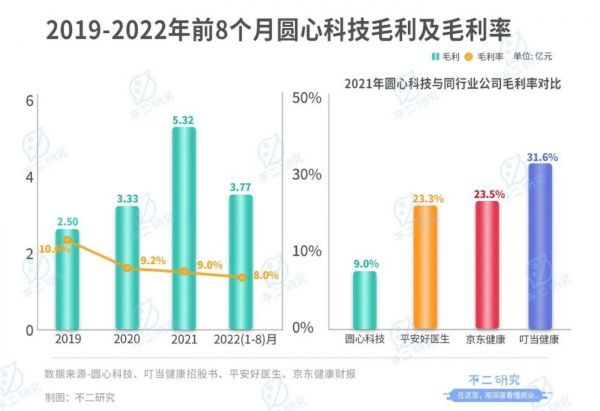 在「不二研究」看来,圆心科技依赖院外综合患者服务“一条腿走路”,固然在创业初期享受到快速占领市场等红利,但这也是拖累其整体毛利率的主要原因之一。