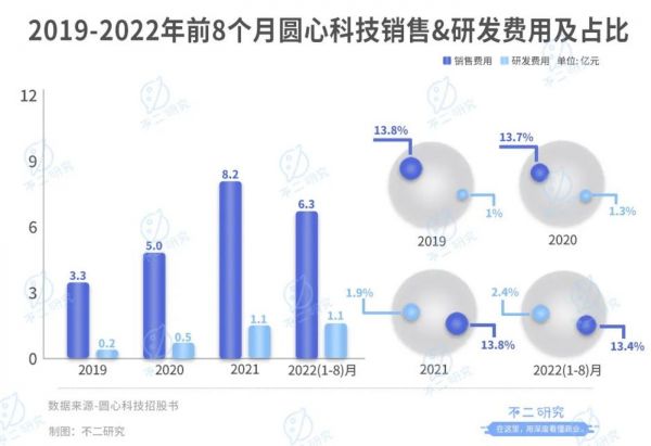 在「不二研究」看来,作为互联网医疗行业的“独角兽”,尽管圆心科技已是资本宠儿,却依然难逃经营持续亏损;从经营数据来看,主要由于低毛利率叠加高销售费率所致。