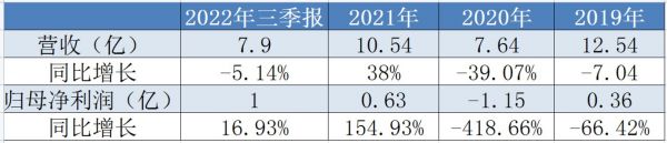 钛媒体APP发现,近三年来,天佑德酒业绩疲软,2019年营利双降低,营收、归母净利润分别为12.54亿、0.36亿,同比下滑7.04%、66.42%;2020年受疫情影响大幅亏损,业绩暴跌,营收、归母净利润分别为7.64亿、-1.15亿,分别下降39.07%、-418.66%;2021年营收、归母净利分别为10.54亿、0.63亿,同比增加38%、154.93%,业绩虽然扭亏,但是营收比2019年还差了2亿,除去最受疫情影响的2020年,2021年营收成为近十年来的最低点;2022年虽然前三季度实现业绩增长,但是第三季度主营收入1.95亿元,同比下降23.25%,归母净利润33.86万元,同比下降96.67%,扣非净利润-380.54万元,同比下降164.29%。