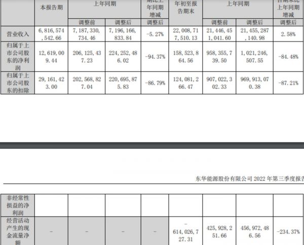 尽管前景不错,但需要投入的资金也不是小数目。截至2022年9月末,东华能源账上的货币资金仅有79.8亿元,同时由于受疫情影响销售回款较缓慢及原材料价格上涨、采购货物支付的现金增加所致,今年前三季度东华能源的经营活动产生的现金流量净额较去年同期减少10.71亿元,下降234.37%。