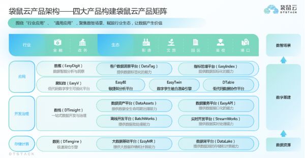 袋鼠云是36氪长期报道的公司。今年,袋鼠云对旗下产品进行全方位规划升级,构建了四大全新产品体系:一站式大数据开发与治理平台“数栈DTinsight”、低代码数字孪生可视化平台EasyV、数据智能分析与洞察平台“数雁EasyDigit”和极速湖仓引擎“数驹DTengine”,在储存计算、开发治理、数据可视化及数字孪生和数据应用多个层面助力更多企业一站式完成数字化转型。