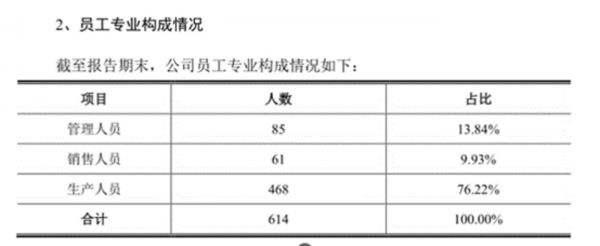 从员工架构上看,截至2021年末,元创股份共拥有614名员工,其中85名管理人员、61名销售人员、468名生产人员,公司似乎没有研发人员和技术人员。